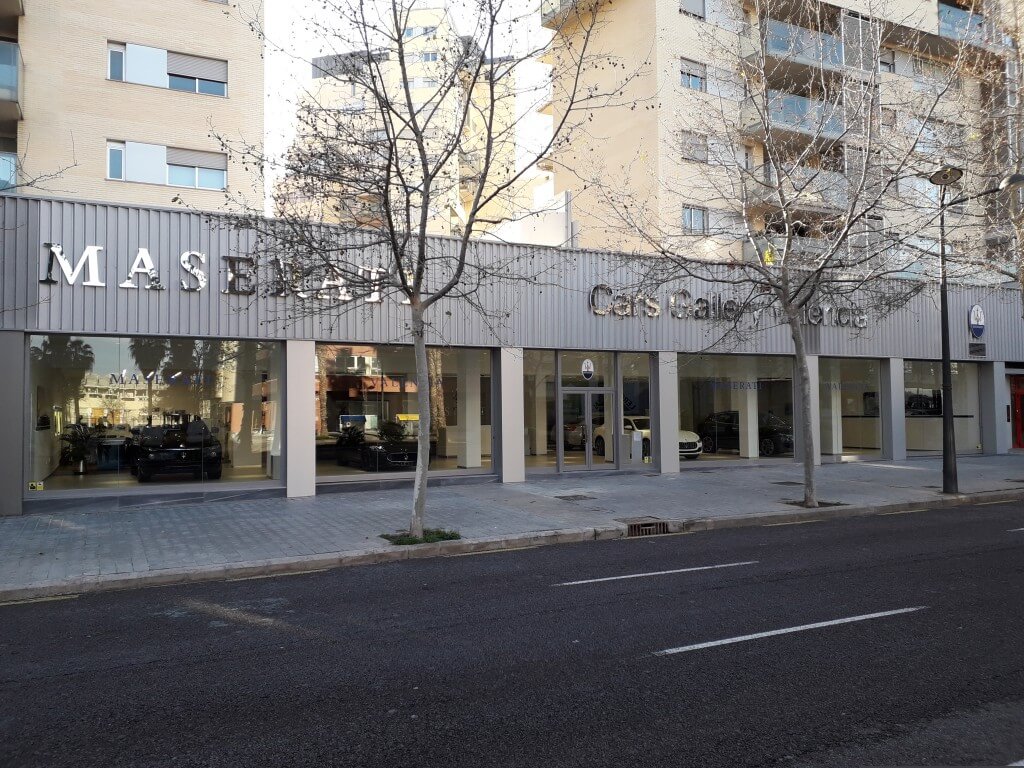 Reforma de local comercial en Valencia para implantación de exposición y venta de vehículos de la firma Maserati. Maestro Rodrigo, Valencia.