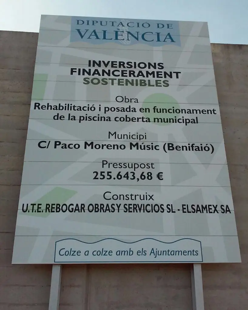 Acometida de obras de adecuación y reparación de las instalaciones y del vaso de la piscina de Benifaio. También reparado de la cubierta. Benifaio, Valencia